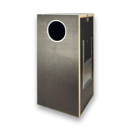 Nichoir en contreplaquĂ© de peuplier marin, avec film noir. Produit Ă haute rĂ©sistance Ă l’eau et Ă l’humiditĂ©.